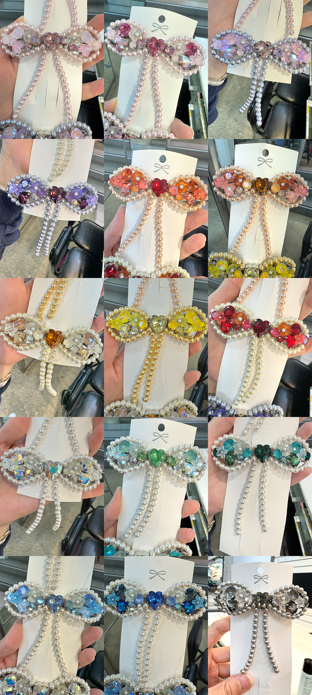 #7 하트 보석 진주리본 머리핀